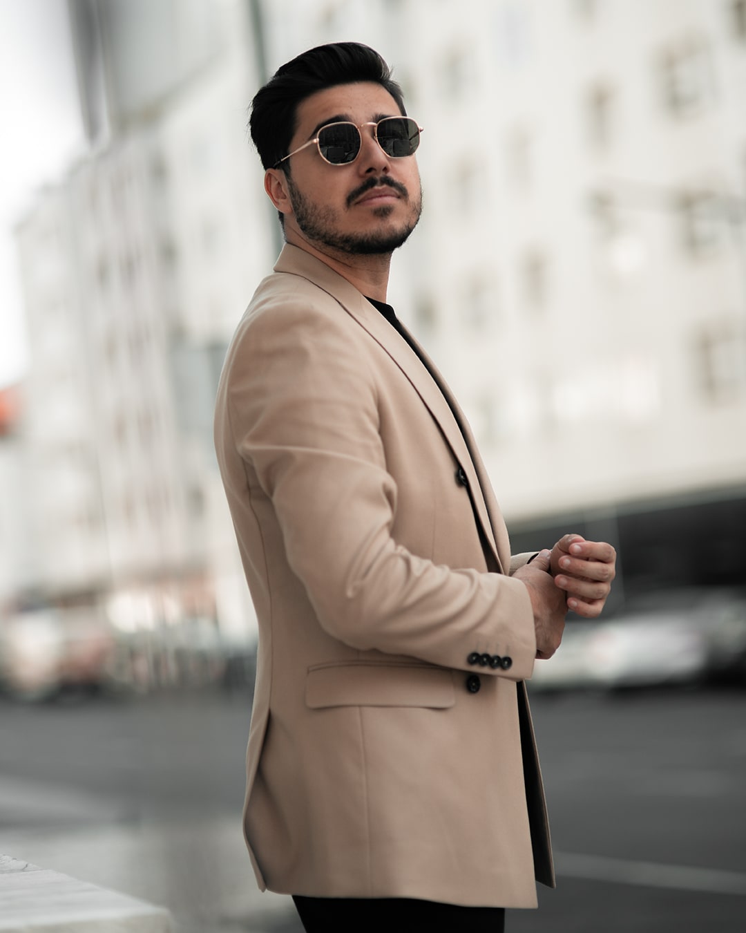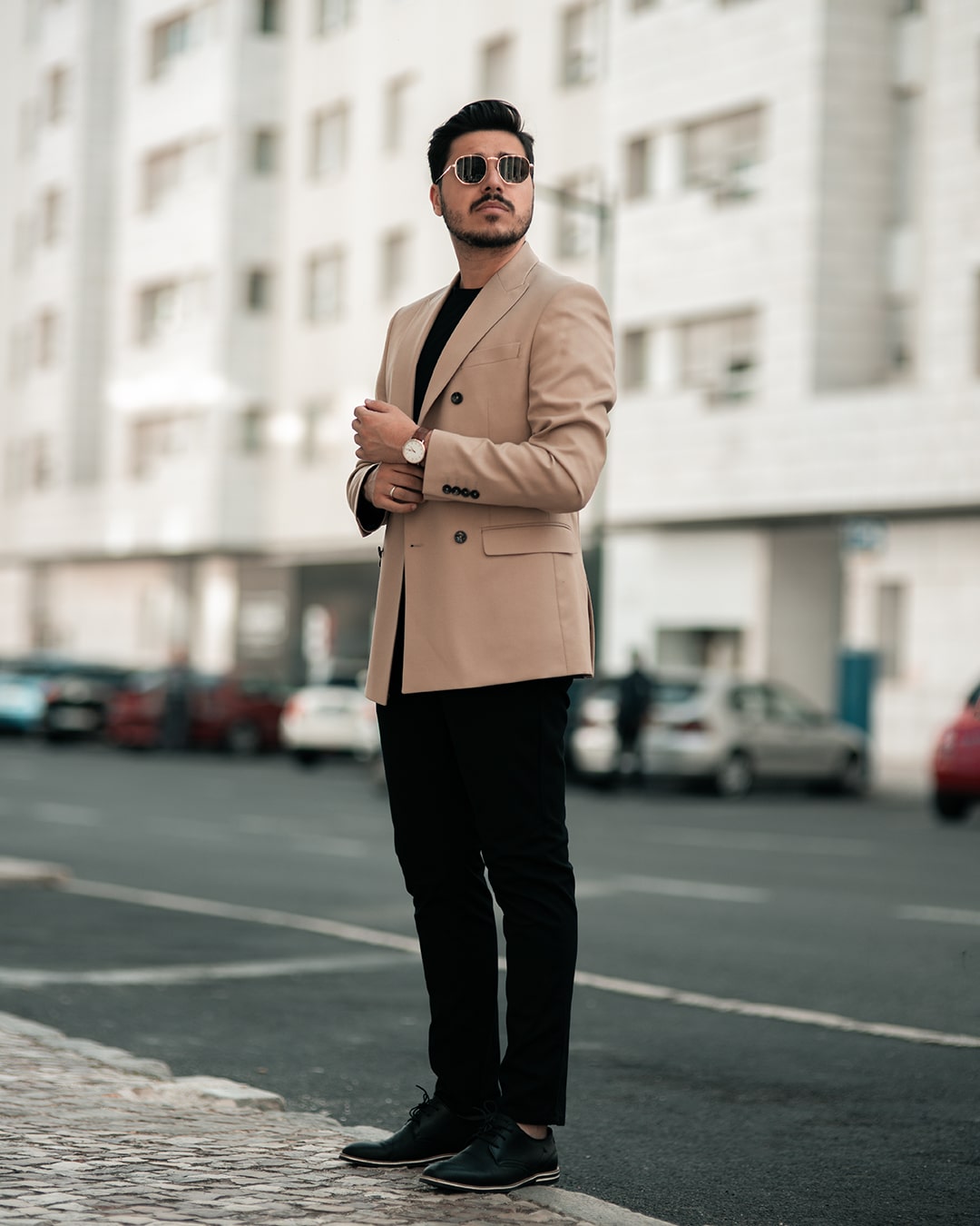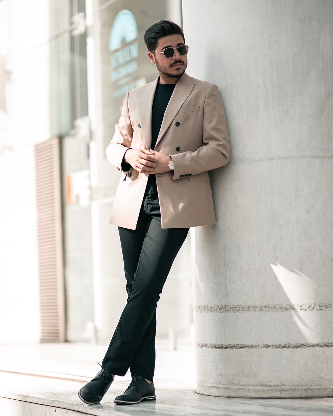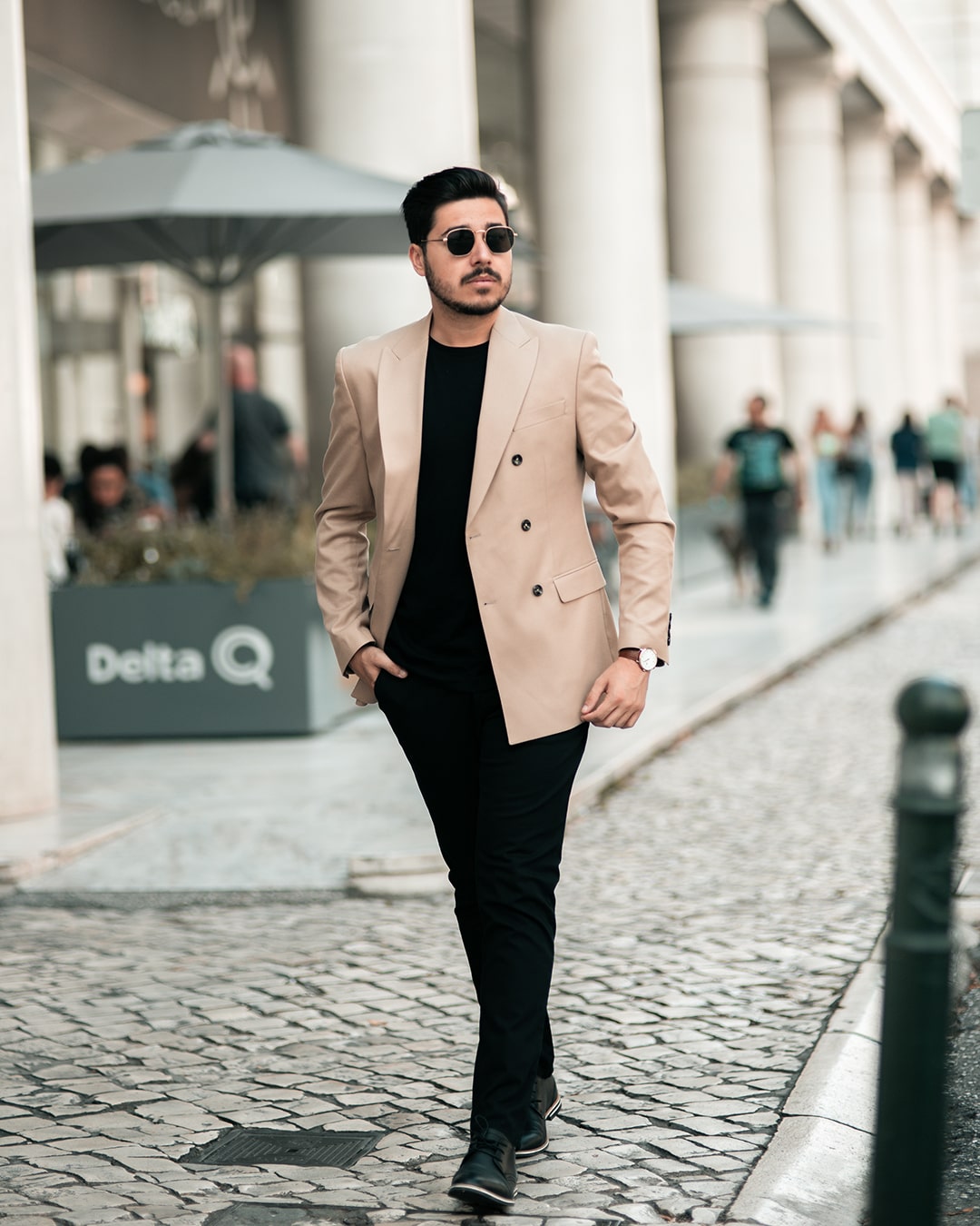 Moda Masculina: Como Elevar um Look Preto com um Blazer Bege